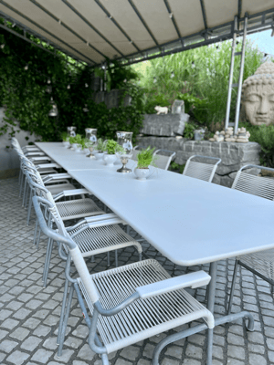 An meinem langen Tisch finden bis zu 20 Gäste Platz.